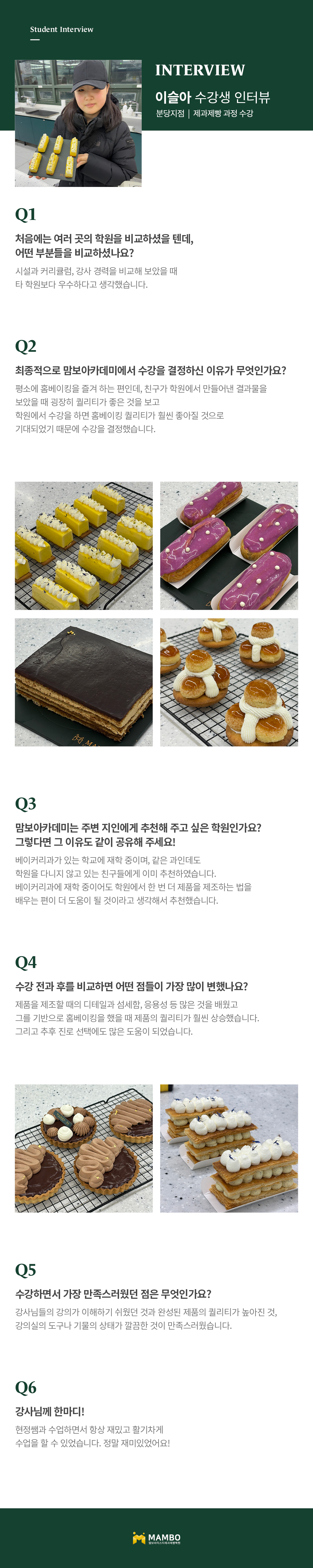 제1조 (개인정보 수집에 대한 동의)맘보교육그룹(이하 회사)는 이용자들이 회사의 개인정보취급방침 또는 이용약관의 내용에 대하여 “동의”버튼 또는 “취소”버튼을 클릭할 수 있는 절차를 마련하여, “동의”버튼을 클릭하면 개인정보 수집에 대해 동의한 것으로 봅니다. 제2조 (개인정보 수집항목) 온라인 문의를 통한 상담을 위해 처리하는 개인정보 항목은 아래와 같습니다. 수집항목 : 성명, 이메일, 전화번호 제3조 (개인정보의 이용목적) 회사는 이용자의 사전 동의 없이는 이용자의 개인 정보를 공개하지 않으며, 원활한 고객상담, 각종 서비스의 제공을 위해 아래와 같이 개인정보를 수집하고 있습니다. 모든 정보는 상기 목적에 필요한 용도 이외로는 사용되지 않으며 수집 정보의 범위나 사용 목적, 용도가 변경될 시에는 반드시 사전 동의를 구할 것입니다. - 성명 : 제품상담에 따른 본인 확인 - 이메일, 전화번호 : 제품상담 및 이벤트 관련 고지사항 전달, 새로운 서비스 및 신상품 정보 제공(DM, SMS, 이메일 등 이용) 이용자는 개인정보의 수집/이용에 대한 동의를 거부할 수 있습니다. 다만, 동의를 거부하는 경우 온라인 문의를 통한 상담은 불가하며 서비스 이용 및 혜택 제공에 제한을 받을 수 있습니다. 제4조 (개인정보의 보유 및 이용기간) 원칙적으로 개인정보 수집 및 이용목적이 달성된 후에는 해당 정보를 지체 없이 파기합니다. 그리고 상법, 전자상거래 등에서의 소비자보호에 관한 법률 등 관계법렵의 규정에 의하여 보존할 필요가 있는 경우 회사는 관계법령에서 정한 일정한 기간 동안 정보를 보관합니다. 이 경우 회사는 보관하는 정보를 그 보관의 목적으로만 이용하며 보존기간은 아래와 같습니다. - 계약 또는 청약철회 등에 관한 기록 : 5년(전자상거래등에서의 소비자보호에 관한 법률) - 소비자의 불만 또는 분쟁처리에 관한 기록 : 3년(전자상거래등에서의 소비자 보호에 관한 법률) - 시용정보의 수집/처리 및 이용 등에 관한 기록 : 3년(신용정보의 이용 및 보호에 관한 법률) - 회사는 귀중한 이용자의 개인정보를 안전하게 처리하며, 유출의 방지를 위하여 다음과 같은 방법을 통하여 개인정보를 파기합니다. - 종이에 출력된 개인정보는 분쇄기로 분쇄하거나 소각을 통하여 파기합니다. - 전자적 파일 형태로 저장된 개인정보는 기록을 재생할 수 없는 기술적 방법을 사용하여 삭제합니다.