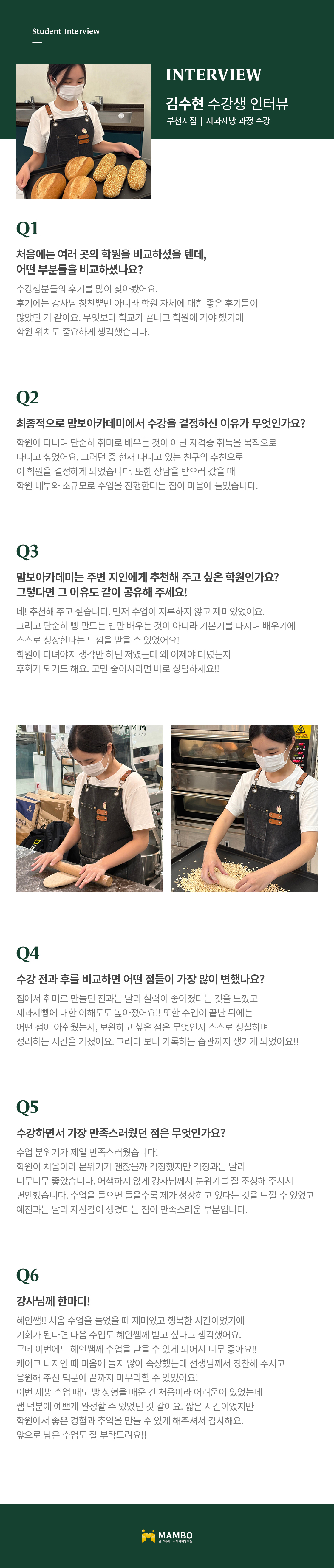 제1조 (개인정보 수집에 대한 동의)맘보교육그룹(이하 회사)는 이용자들이 회사의 개인정보취급방침 또는 이용약관의 내용에 대하여 “동의”버튼 또는 “취소”버튼을 클릭할 수 있는 절차를 마련하여, “동의”버튼을 클릭하면 개인정보 수집에 대해 동의한 것으로 봅니다. 제2조 (개인정보 수집항목) 온라인 문의를 통한 상담을 위해 처리하는 개인정보 항목은 아래와 같습니다. 수집항목 : 성명, 이메일, 전화번호 제3조 (개인정보의 이용목적) 회사는 이용자의 사전 동의 없이는 이용자의 개인 정보를 공개하지 않으며, 원활한 고객상담, 각종 서비스의 제공을 위해 아래와 같이 개인정보를 수집하고 있습니다. 모든 정보는 상기 목적에 필요한 용도 이외로는 사용되지 않으며 수집 정보의 범위나 사용 목적, 용도가 변경될 시에는 반드시 사전 동의를 구할 것입니다. - 성명 : 제품상담에 따른 본인 확인 - 이메일, 전화번호 : 제품상담 및 이벤트 관련 고지사항 전달, 새로운 서비스 및 신상품 정보 제공(DM, SMS, 이메일 등 이용) 이용자는 개인정보의 수집/이용에 대한 동의를 거부할 수 있습니다. 다만, 동의를 거부하는 경우 온라인 문의를 통한 상담은 불가하며 서비스 이용 및 혜택 제공에 제한을 받을 수 있습니다. 제4조 (개인정보의 보유 및 이용기간) 원칙적으로 개인정보 수집 및 이용목적이 달성된 후에는 해당 정보를 지체 없이 파기합니다. 그리고 상법, 전자상거래 등에서의 소비자보호에 관한 법률 등 관계법렵의 규정에 의하여 보존할 필요가 있는 경우 회사는 관계법령에서 정한 일정한 기간 동안 정보를 보관합니다. 이 경우 회사는 보관하는 정보를 그 보관의 목적으로만 이용하며 보존기간은 아래와 같습니다. - 계약 또는 청약철회 등에 관한 기록 : 5년(전자상거래등에서의 소비자보호에 관한 법률) - 소비자의 불만 또는 분쟁처리에 관한 기록 : 3년(전자상거래등에서의 소비자 보호에 관한 법률) - 시용정보의 수집/처리 및 이용 등에 관한 기록 : 3년(신용정보의 이용 및 보호에 관한 법률) - 회사는 귀중한 이용자의 개인정보를 안전하게 처리하며, 유출의 방지를 위하여 다음과 같은 방법을 통하여 개인정보를 파기합니다. - 종이에 출력된 개인정보는 분쇄기로 분쇄하거나 소각을 통하여 파기합니다. - 전자적 파일 형태로 저장된 개인정보는 기록을 재생할 수 없는 기술적 방법을 사용하여 삭제합니다.